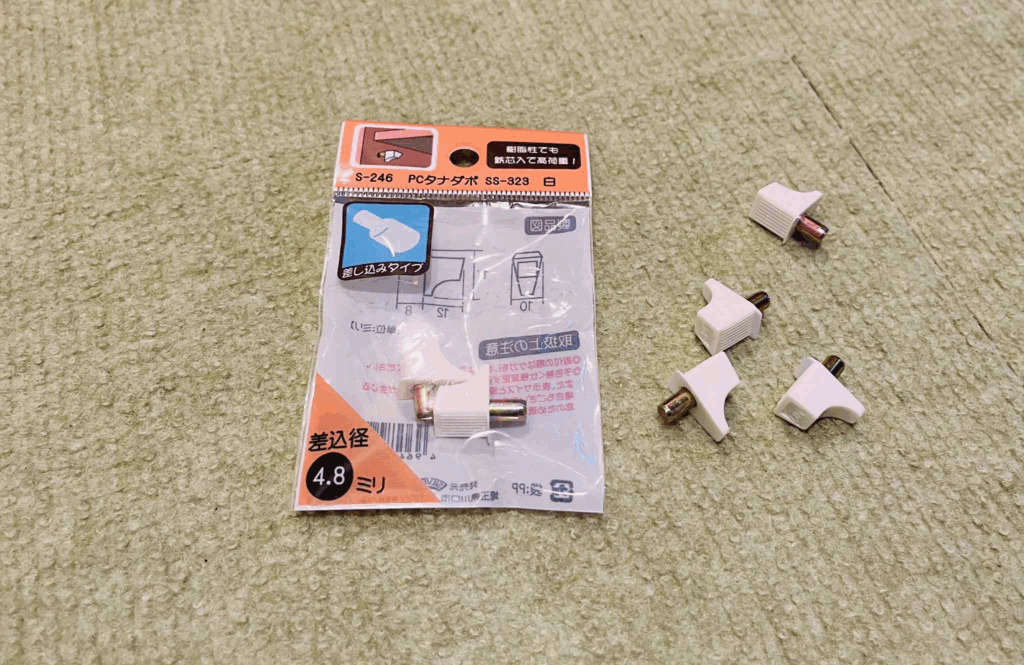 家に残っていたダボ(棚受け)を使って、棚の両側に差し込んで板をのせたら……完成!